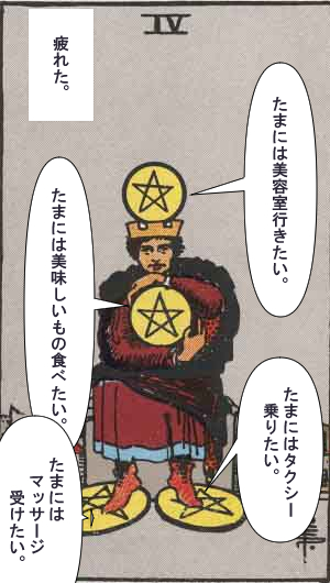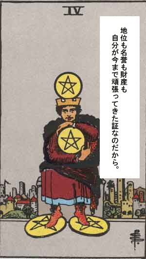 ペンタクルの4=執着!と安易に受け取ってる人もいるから気を付けてくれよな!